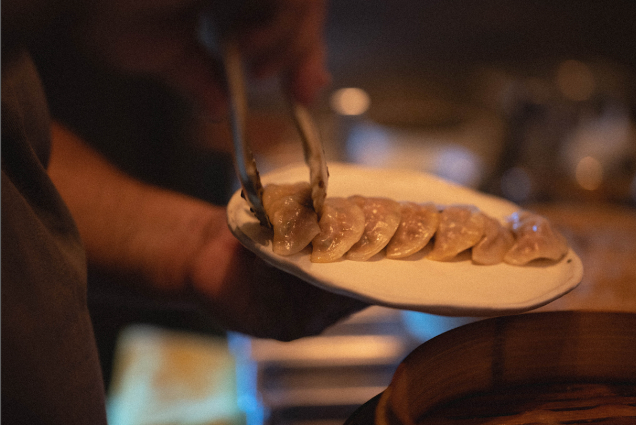 • Gyoza hechas a mano, rellenas de res y de cerdo.